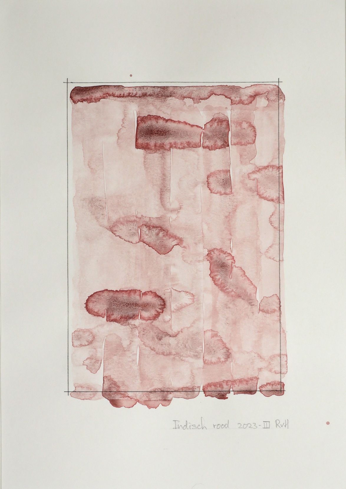 Deze vlakken, opgebouwd uit parallelle lijnen, zijn voor mij een ideaal vehikel om de expressiviteit van waterverf te tonen. De vlekken verrassen me steeds weer.