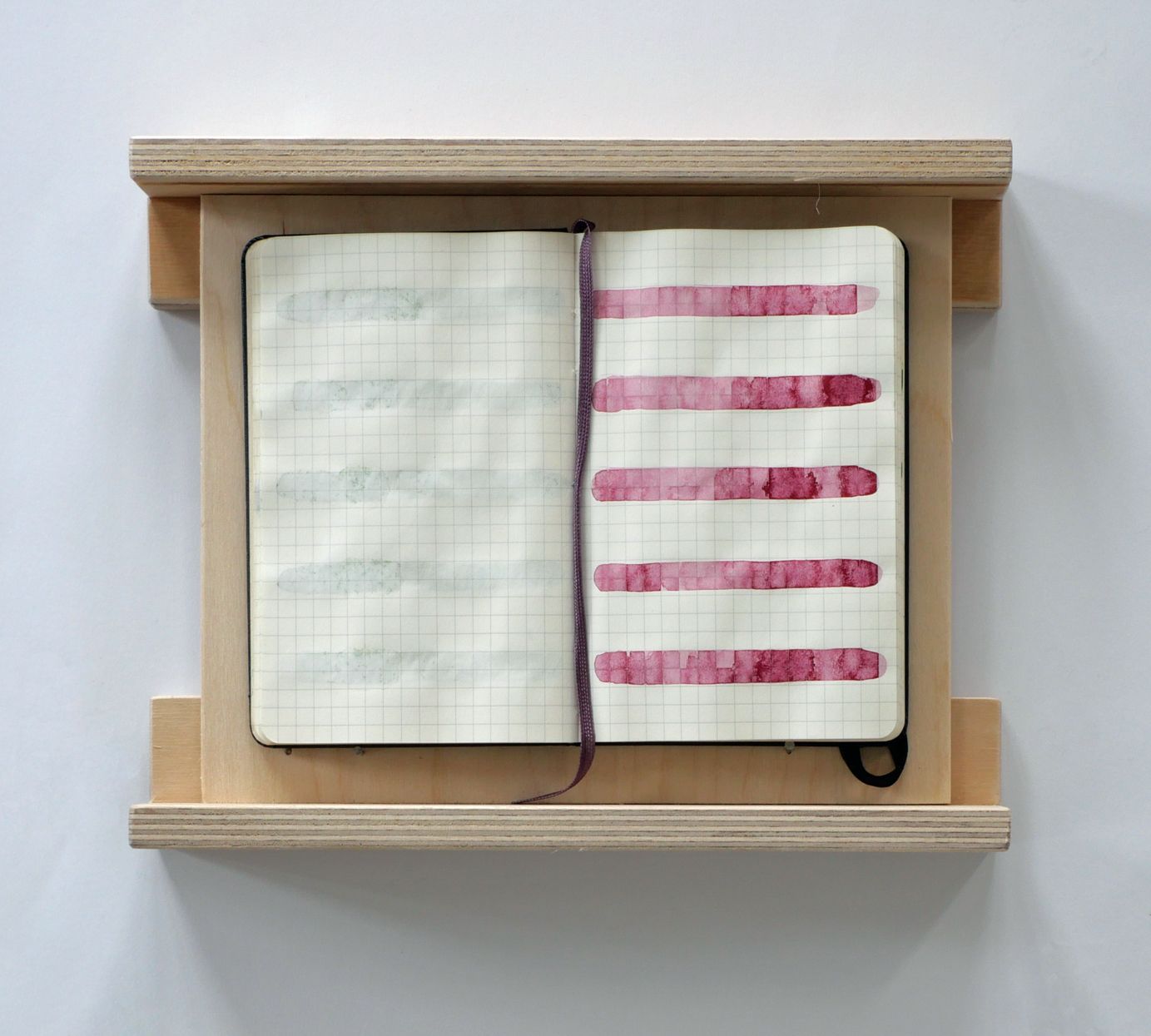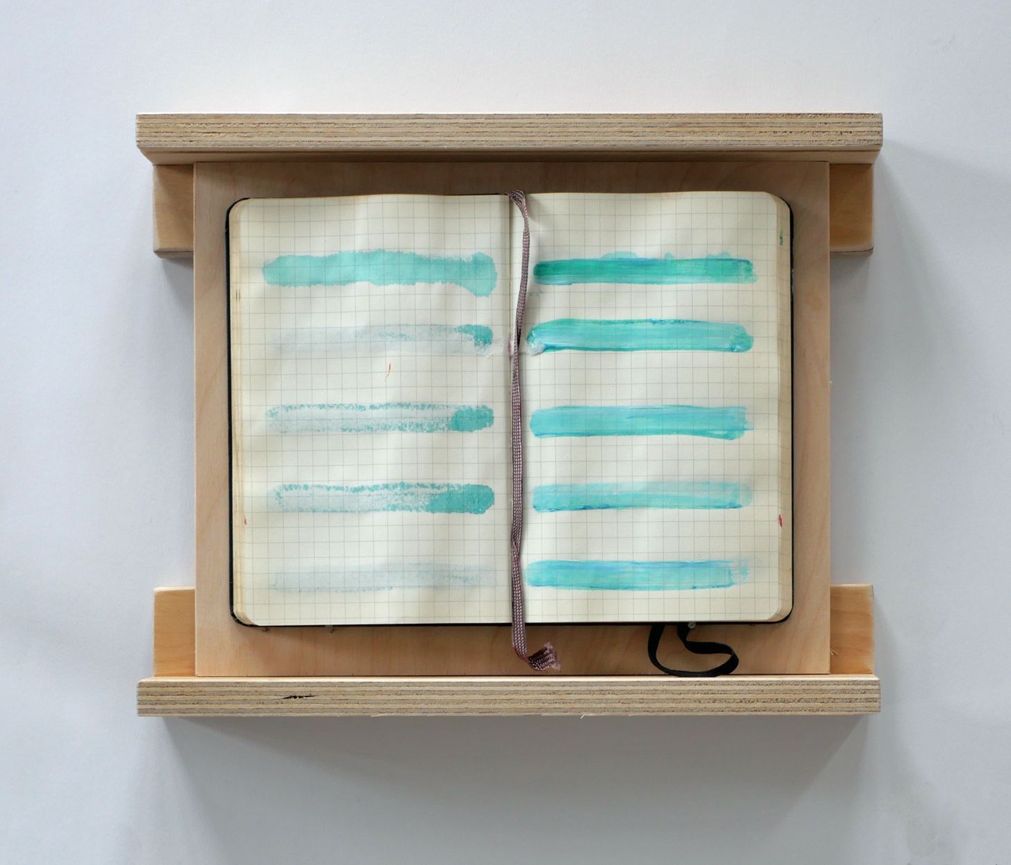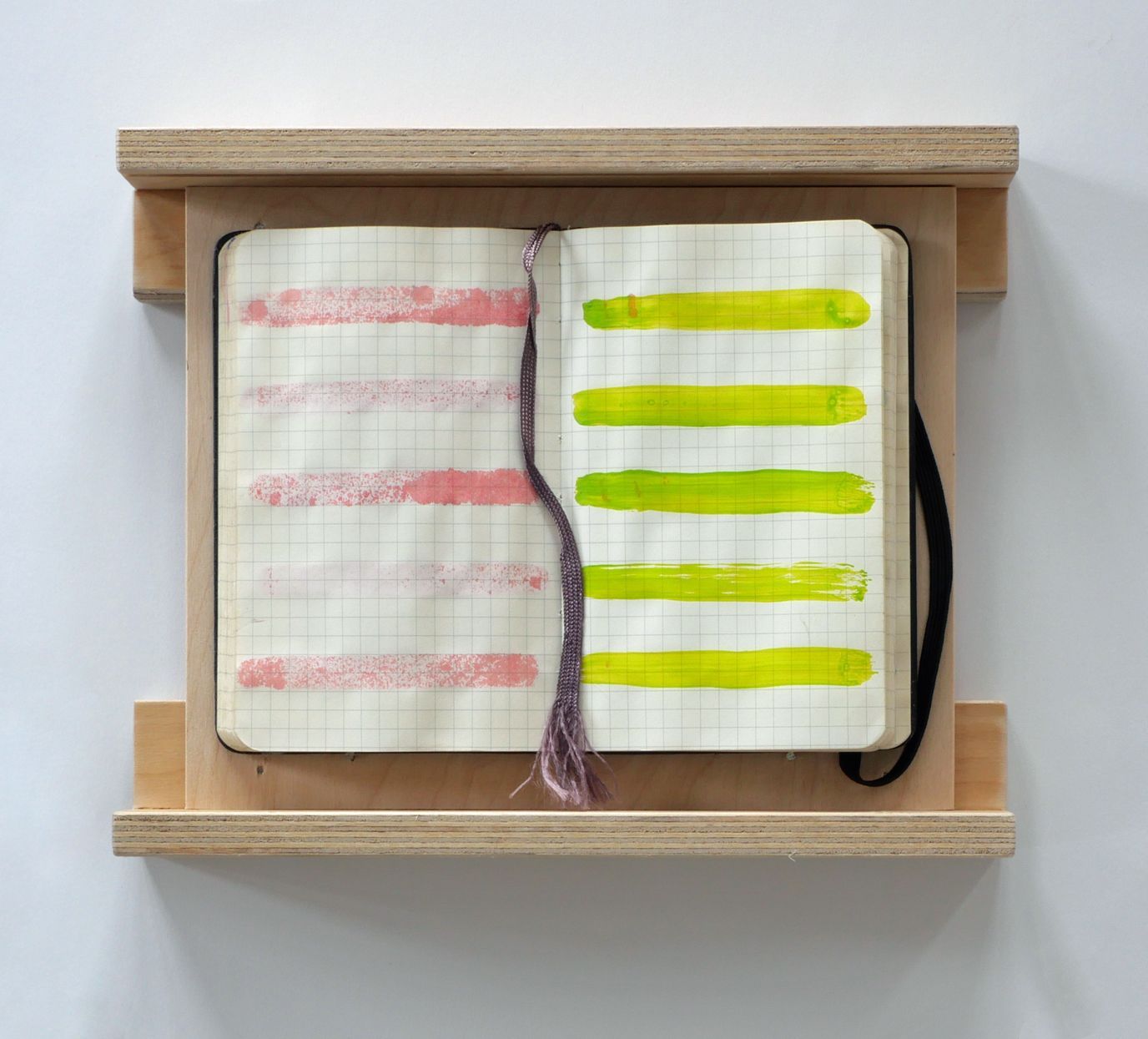 In an A5-sized Moleskine booklet I usually make sheets with five strokes of every paintcolour I use . A painting diary? An administration?