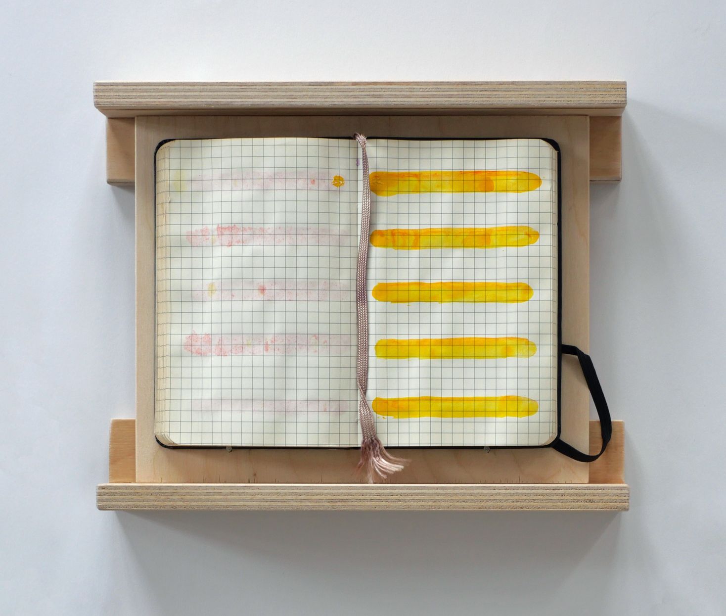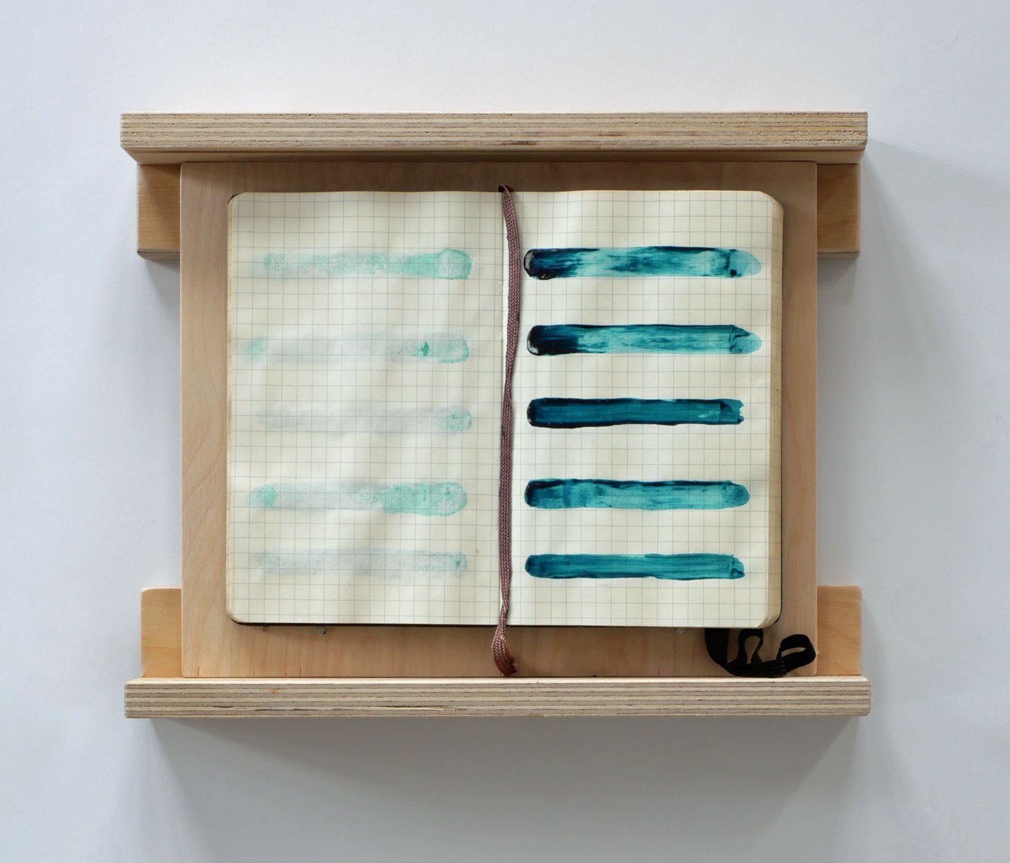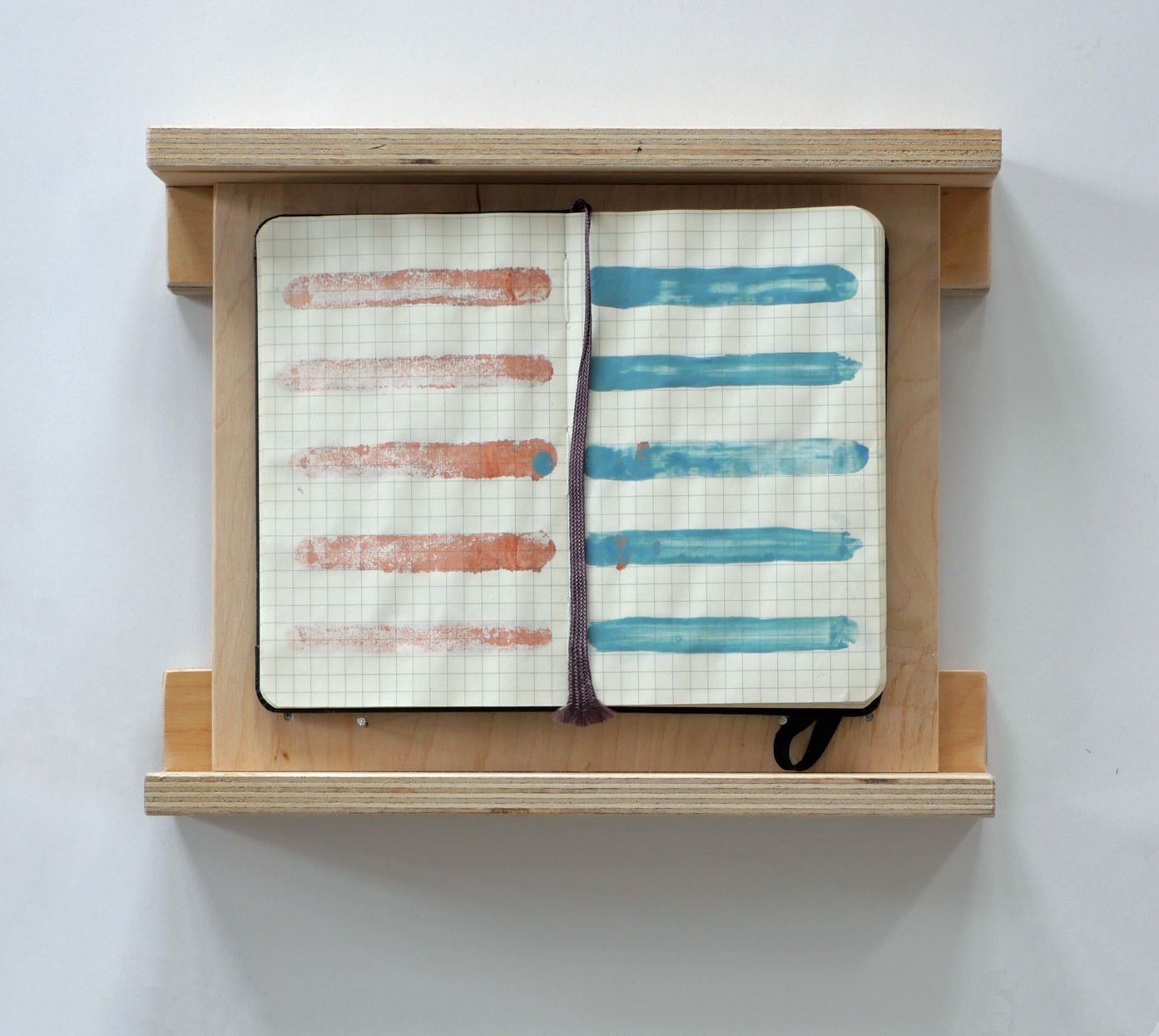 In an A5-sized Moleskine booklet I usually make sheets with five strokes of every paintcolour I use . A painting diary? An administration?