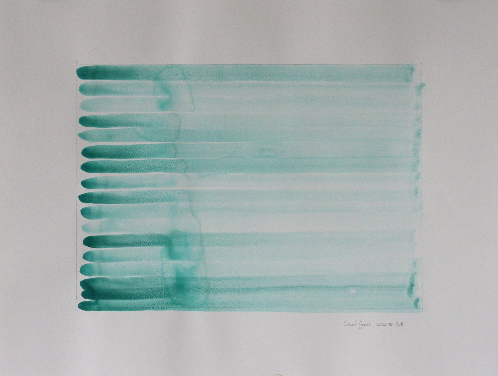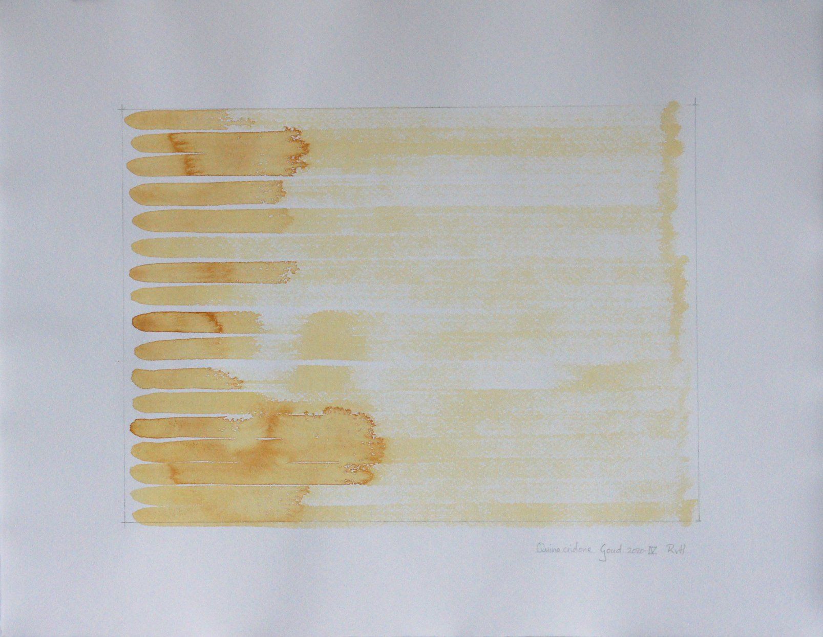 Deze reeks maakt deel uit van de grotere serie Kleur in eenvoud. In een enkele kleur aquarelverf, met simpele vormen en gebaren onderzoek ik wat water, pigment en papier ‘van nature’ willen tonen. Die natuurlijke uitdrukkingskracht vormt een spanningsveld met de gebaren waarmee de verf is opgebracht.
