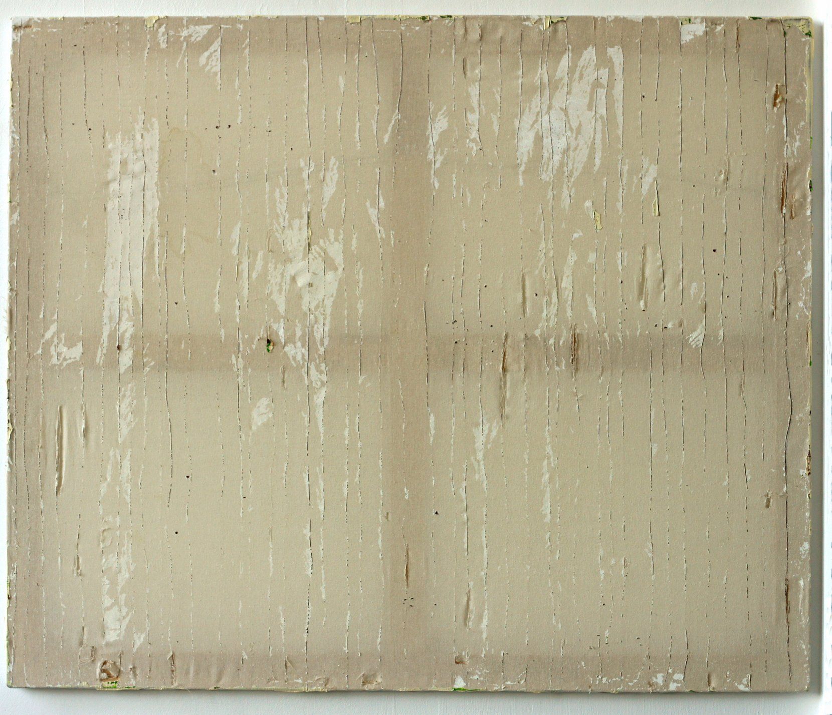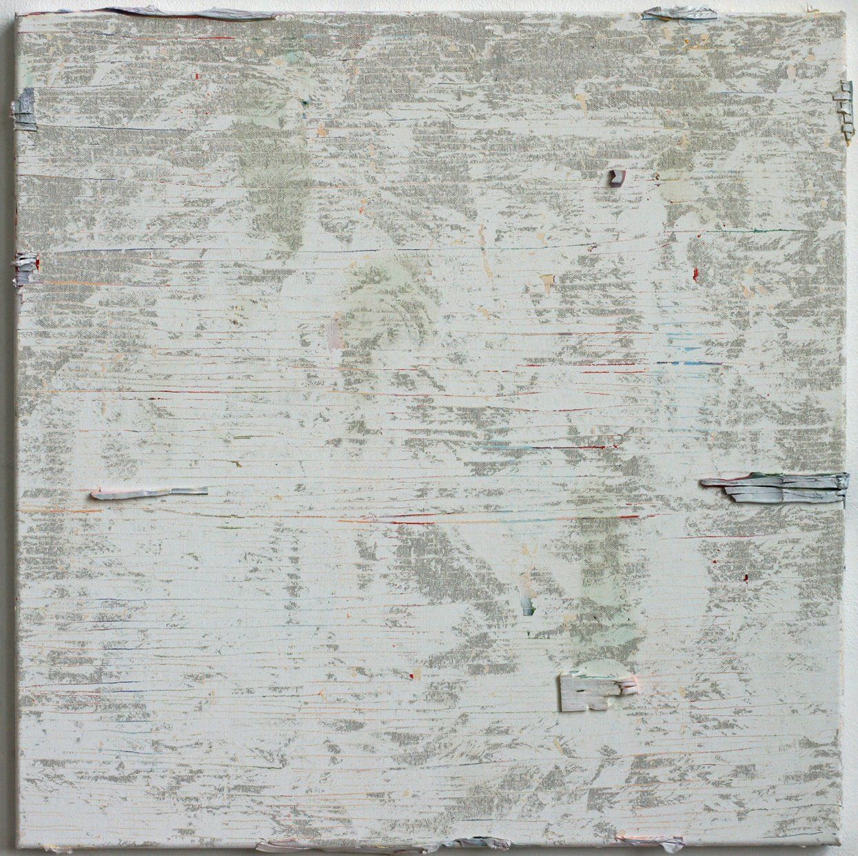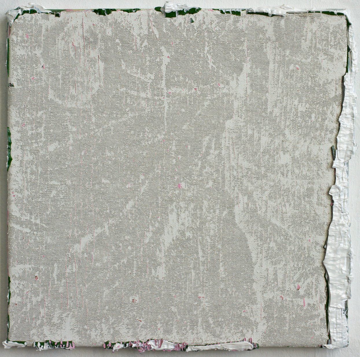 Deze serie is het resultaat van vernietiging. De dikke laag acrylverf van het oorspronkelijke schilderij - chemisch gezien ‘gewoon’ plastic - is met behoorlijk wat kracht van het doek getrokken. Dit vernietigingsproces maakt sporen zichtbaar van de opeenvolgende fases; zowel sporen van het oorspronkelijke schilderij als van dit gewelddadige proces.